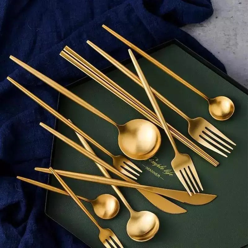 Gold Cutlery Set utensils 24pc