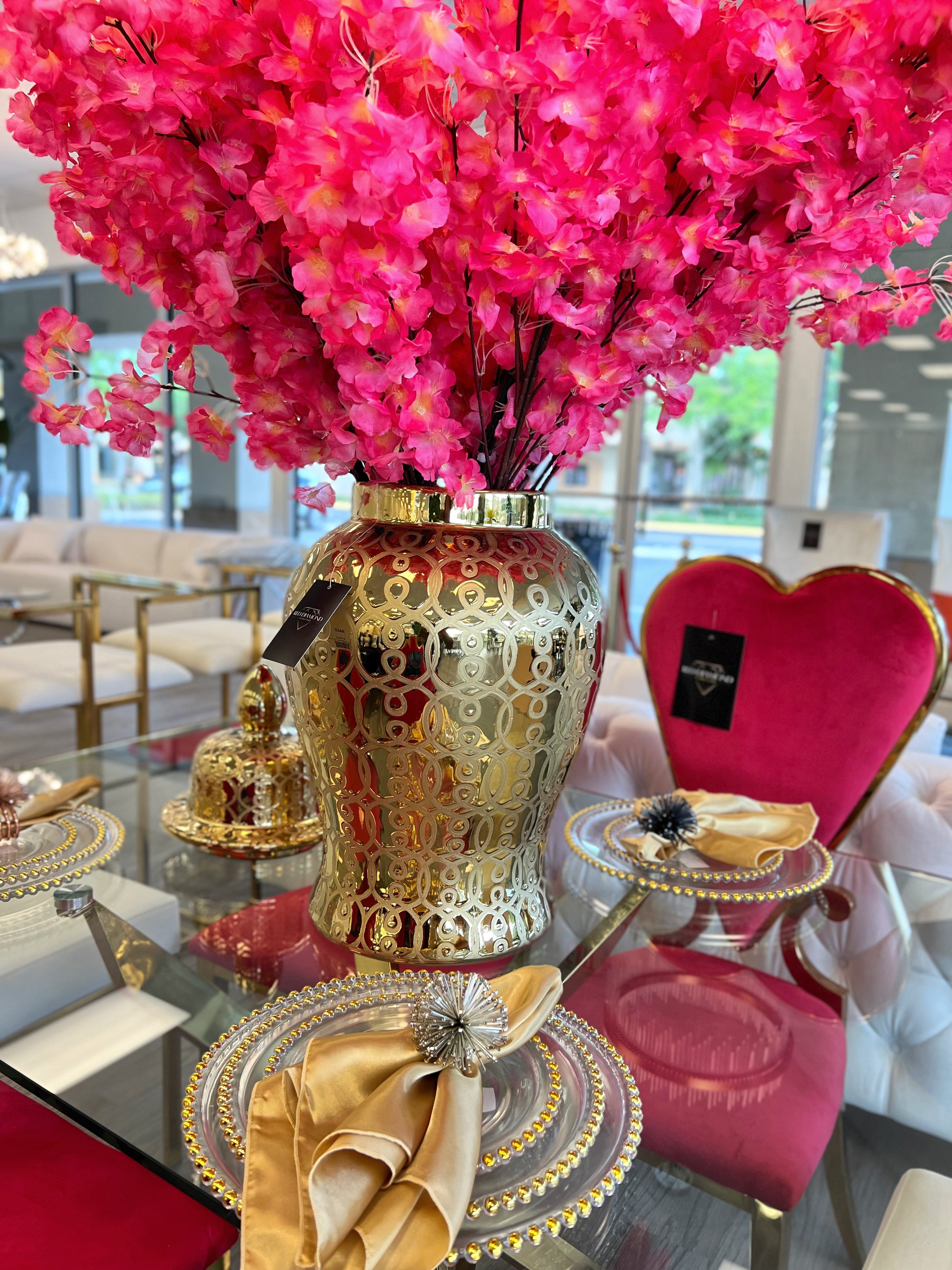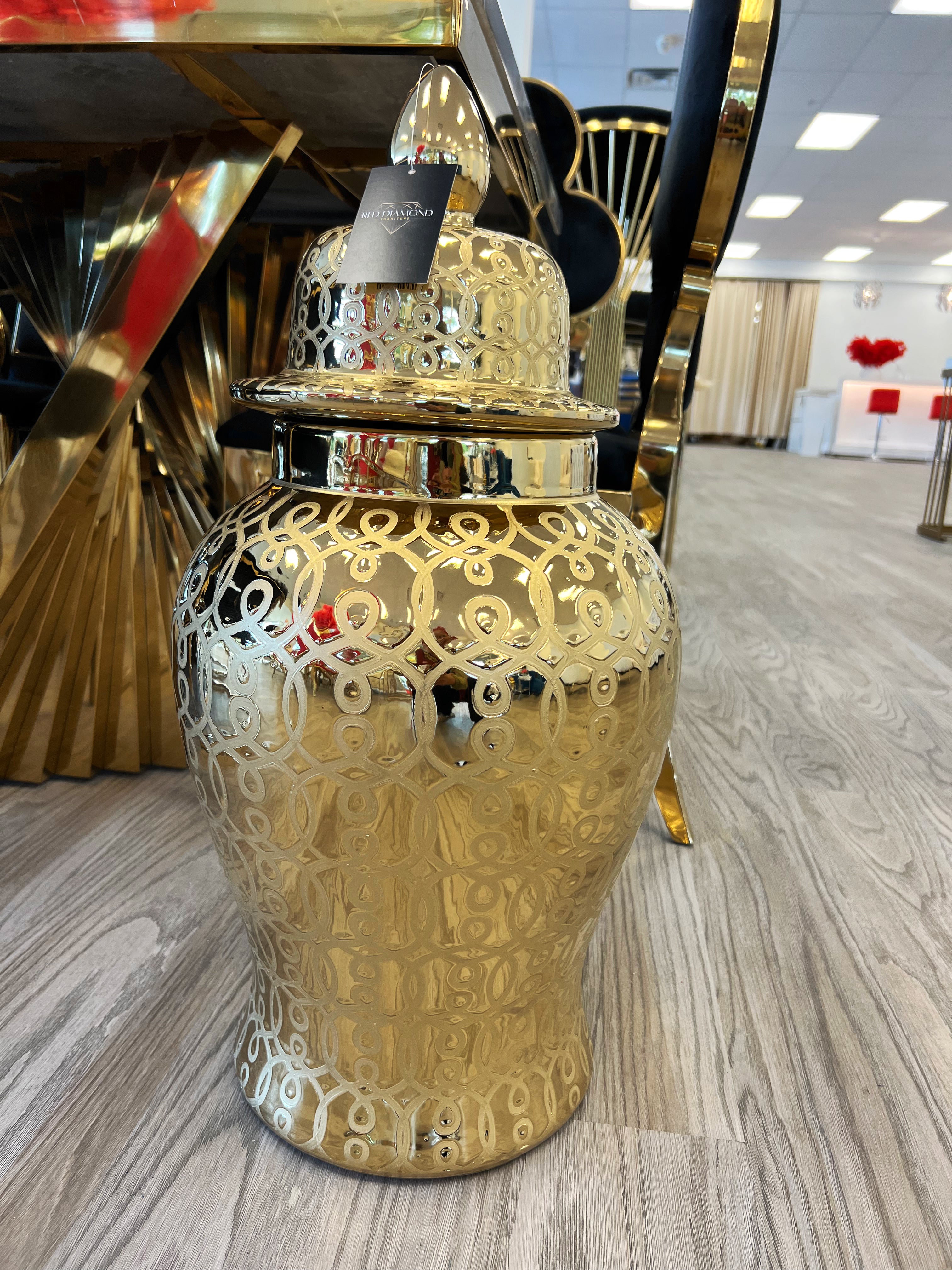 Gold ginger jar swirly lines porcelain vase j131-m